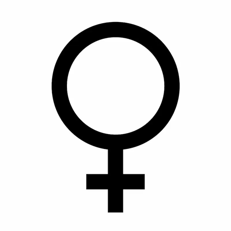 Symbolerna runt kartan representerar olika astrologiska positioner. Venus är den lilla symbolen som liknar en cirkel med ett kors nedtill – samma tecken som ofta används för det feminina.